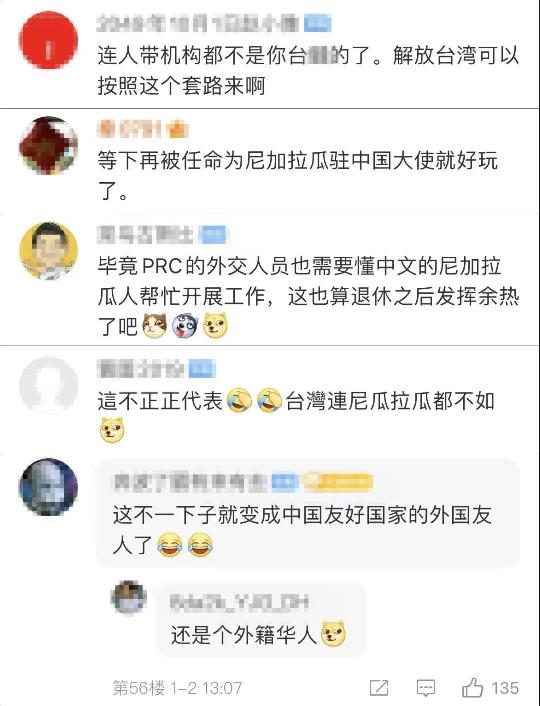 按照台灣網民的話來說,這則新聞的評論區就是“大型崩潰現場”,還有人犀利吐槽“民進黨執政下真的什麽事都能發生”。 國民黨副主席連勝文在采訪中被問到台灣地區領導人蔡英文是否在事前已知曉此事的相關情況。他也回答稱,蔡英文如何想,他不知道,但蔡英文可能大部分時間都花在用“公投”洗腦民眾,所以對這事不瞭解;而她手下的一群人可能也忙著編造謊言洗腦民眾,所以對於所謂“邦交國”的狀況更不知道。 消息傳到大陸也引發網友關註,結合最近尼加拉瓜沒收台灣原“辦事機構”並轉交給大陸的新聞,大陸網友這邊是笑不活了,“好家夥,這下連人帶機構都不是台灣的了”、“這官員下一步要是成了尼加拉瓜駐華大使就絕了”。