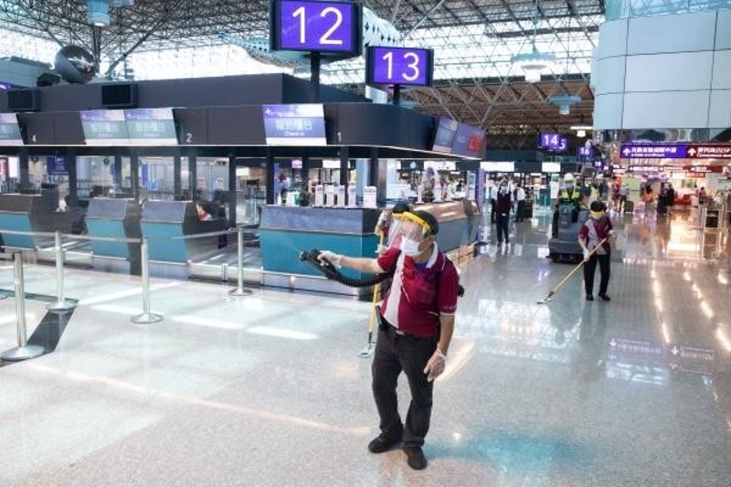 資料圖:台灣桃園機場消毒中 香港中通社圖片