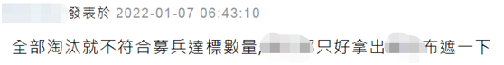 還有人說,全部淘汰就不符合募兵達標數量,台防務部門只好拿布遮一下。↓