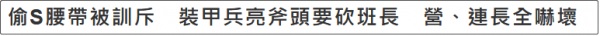 台灣士兵偷腰帶被抓,亮斧頭要砍班長,嚇壞營長和連長…分享到: