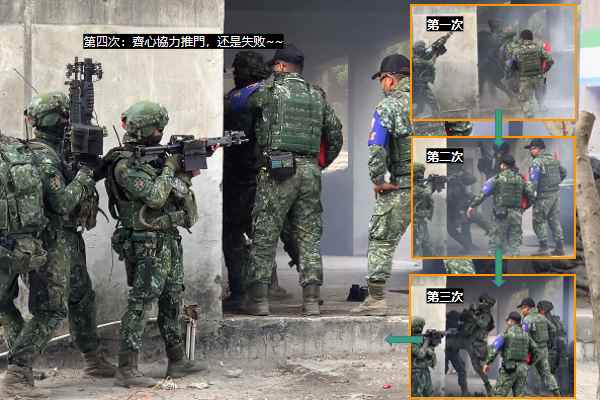 (台媒報道截圖) 對於此次台陸軍城鎮作戰,島內媒體也是爭相報道,稱訓練全程采用實兵模擬接戰系統,“陸軍勤練城鎮戰,演訓實戰化”、“實戰演練,狙擊敵軍”,甚至用上“台軍誘敵深入後獵殺”的標題。 但,台軍士兵的“真正實力”還是在真實的鏡頭前暴露了。 據島內媒體公布的一段視頻顯示,在模擬城鎮對抗戰時,一個由數名台軍士兵組成的作戰小組,在兩名教官帶領下,數次試圖破門而入,結果都以失敗告終。最後,只好換門再攻……