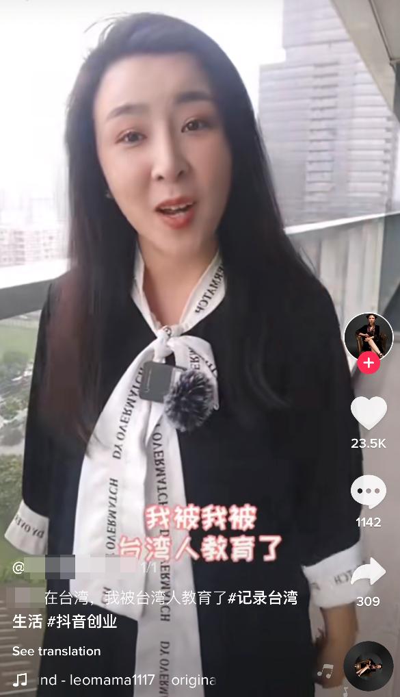 在社交媒體上,該女子自稱般若,介紹自己是嫁到台灣的山東姑娘,今年35歲,多年來一直在創業,在一段視頻中,其一句“我們的MCN機構”也或多或少透露了其創業的方向,據其介紹,她曾幫助運營一些商業IP,孵化了200多個兩岸的KOL。 近日引發關注的視頻中,般若稱自己被台灣人“教育了”,視頻一開始,她介紹,自己這一次在台灣半年多了,深刻地體會到了兩地的文化差異,感受到“我這個山東人在這片土地上散發著那種女黑社會頭子的氣息”。