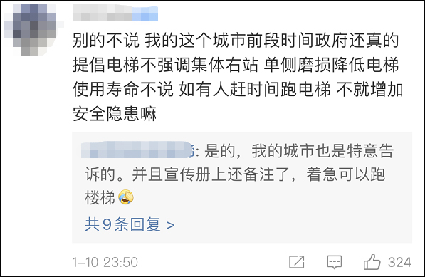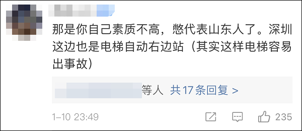 有網友調侃,電梯自動靠右站大陸早就不提倡了,現在拿出來強調素質高,倒也不必。