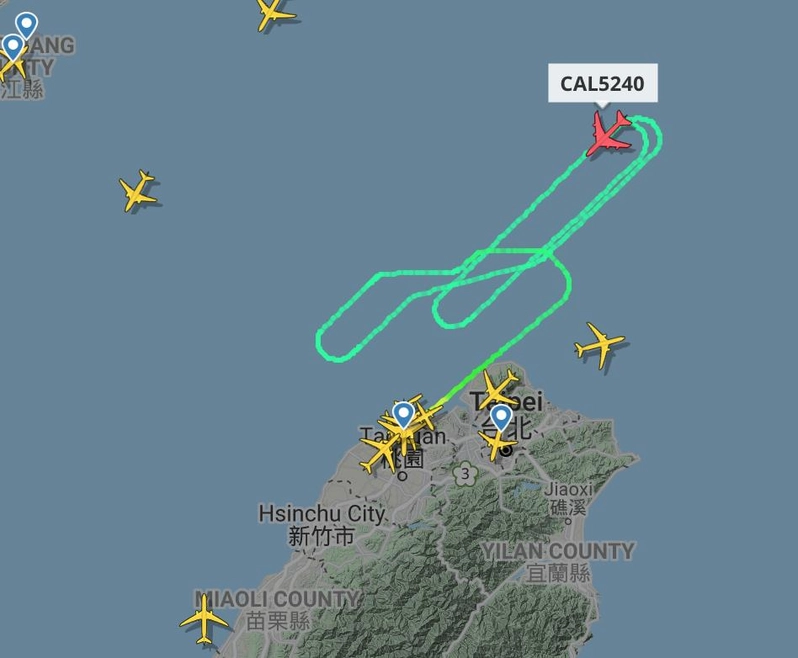 華航CI5240貨機拋油回航 (圖片來源:Flightradar24網站)
