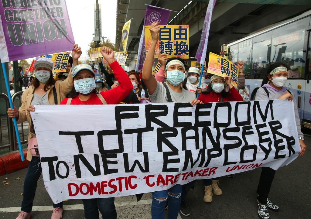 在台移工發起遊行訴求自由轉換僱主 (圖片來源:中時新聞網)