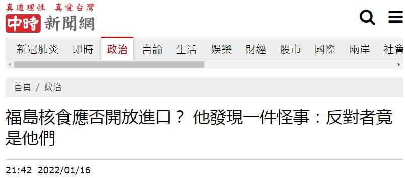 台媒報道截圖 報道稱,民進黨當局研擬日本福島核災食品解禁,傳出為避免福島五縣市食品引發恐慌,研擬以“福食”取代“核食”。民進黨立委趙天麟16日受訪時聲稱,經過萊豬(含萊克多巴胺的美國豬肉)“公投”後,台灣社會更趨於成熟,不能一概而論把日本福島相關食品簡稱為核食,清楚定義正名是有必要的。 有媒體人在臉書專頁“文翔政論”稱,只要科學檢測,該開放也沒理由拒絕。不過他發現一件奇怪的事情,積極提醒他不要輕易讓日本政府橫柴入竈的,竟然是日本朋友們。 “文翔政論”稱,媒體人早田先生與本田先生採訪核醫學專家森田康彥,森田住在福島縣,是3·11大地震重災區,不僅是核輻射專家,也是當地居民,從他的觀點來談對日本福島核災食品解禁的看法。森田康彥稱,福島當地看不到輻射相關數字測量結果,日本官方只喊“安心安全”口號,實際不聞不問,實情相當模糊。台灣想加入全面與進步跨太平洋夥伴關系協定(CPTPP)必須獲得其他11國同意,不是在日本一國的手裏。