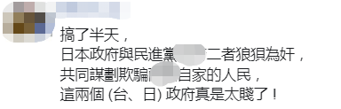 還有人稱,搞了半天,日本政府與民進黨當局二者狼狽為奸,共同謀劃欺騙自家的人民,這兩個(台、日)“政府”真是太賤了 !↓