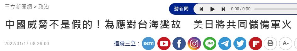 不斷煽風點火!綠媒炒作美日將共同儲備軍火,“為應對台海變故等緊急事件”分享到: