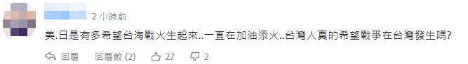 台媒報道截圖 與綠媒的興奮炒作不同,一些島內網友認為,“美日是有多希望台海戰火生起來……一直在加油添火……”這名網友還反問:台灣人真的希望戰爭在台灣發生嗎?