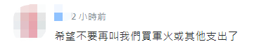 更有人表示,“希望不要再叫我們買軍火或其他支出了”。