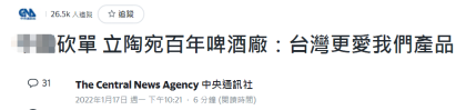 喪失大陸訂單,立陶宛啤酒廠稱“台灣更愛我們產品”,島內網友嘲諷分享到:
