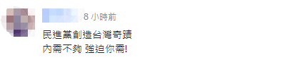 另有網友嘲諷民進黨當局“創造台灣奇跡”:“內需不夠,強迫你需!”