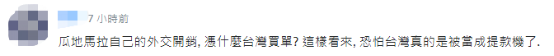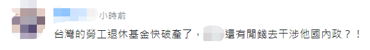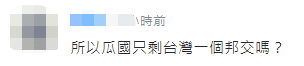 也有網友質疑,“台灣的勞工退休基金快破產了,‘政府’還有閑錢去幹涉他國內政?!”“所以瓜國只剩台灣一個‘邦交’嗎?”
