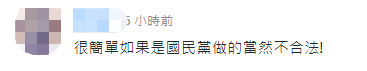 還有網友譏諷,“塔綠班(指民進黨當局)就是法。”“很簡單如果是國民黨做的當然不合法!”