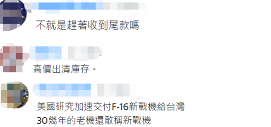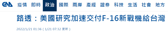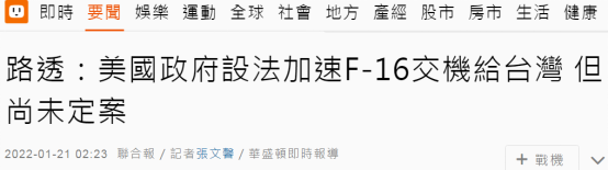 “聯合新聞網”、“中央社”等台媒21日一早援引路透社20日的報道炒作稱,美國政府正設法加速交付F-16戰機給台灣,“以強化台灣防衛能力”。有島內網友對此擔心,提前交的F-16“是會墜機的那種嗎?”