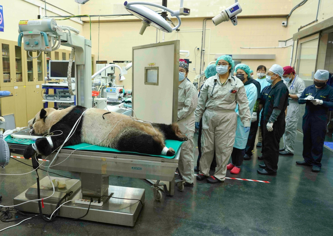 “團團”接受體檢 香港中通社圖片 為釐清“團團”流鼻血的原因,台北市動物園獸醫團隊為“團團”進行全身麻醉後檢查鼻腔,發現其右側鼻黏膜紅腫,判斷“團團”得了鼻炎並因此產生微血管破裂的狀況。除了找出流鼻血的原因,園方也利用此次“團團”全身麻醉的機會,邀集各方團隊為其進行全身性健康檢查,包括一般聽診、觸診、血壓量測、抽血、全身X光、超音波檢查、眼科、口腔檢查等,針對團團的齒科牙套也進行後續的追蹤。(完) 【編輯:鄭竣凱】
