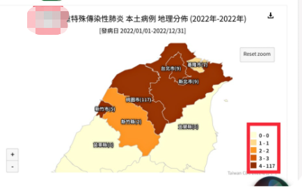 台灣疫情指揮中心圖表 從台灣流行疫情指揮中心每日公佈的疫情圖表上可以看出,當局用從白色到深棕色的不同色階來表示各個縣市的確診病例數,病例數越多即顏色越深,但圖表右側的圖例縣市,從4例到117例均為同一種顏色。 游淑慧點出,只有9個病例的台北市與新北市,在圖表中卻與有117個病例的桃園市屬於同樣嚴重的顏色。 游淑慧補充,在指揮中心每日公佈的新增確診病例表格中,去年的表格會強調新增病例所在的城市,疫情嚴重的台北市與新北市在去年天天被點名,今年疫情集中在桃園市與高雄市,指揮中心表格就不再顯示新增病例所在城市。 游淑慧批評,疫情之下人人自危,但指揮中心卻仍有心思在公示數據的圖標上面玩“雙標”,僅僅只是為了保護民進黨執政的縣市,指揮中心欠那些受到不公待遇的縣市與市民一個道歉。# 【編輯:鄭竣凱】
