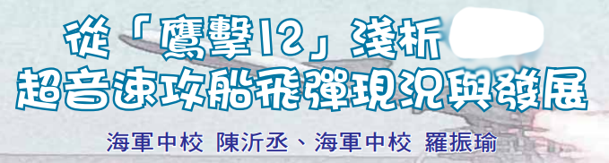2015年“抗戰勝利70周年閱兵”電視畫面截圖 這篇以“鷹擊12導彈與大陸超音速導彈發展”為主題的論文,先是簡單介紹了超音速導彈的原理性能,及世界各國超音速導彈的發展現狀,然後重點分析了大陸鷹擊系列導彈的研製歷程,及鷹擊12導彈的優劣勢、各類型號與實際應用等等。 論文發表於台灣《海軍學術雙月刊》第55卷第6期。論文作者是台灣某海軍指揮參謀學院的陳沂丞中校和羅振瑜中校。