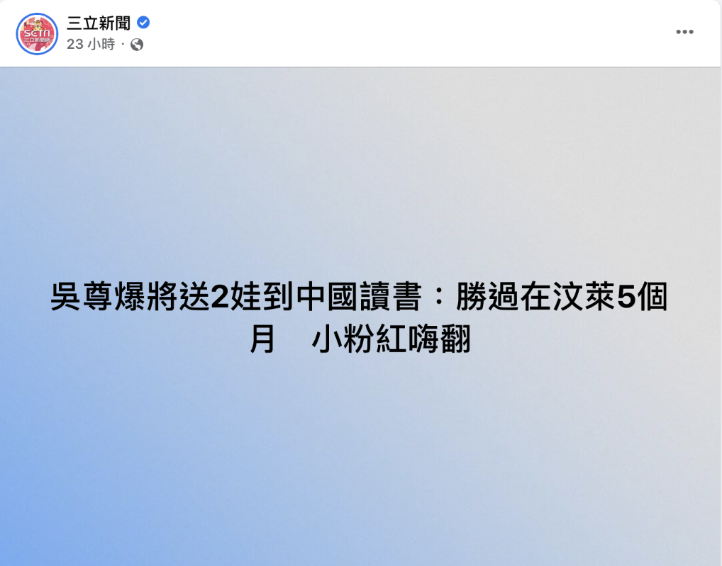 吳尊送孩子到大陸讀書,島內綠媒又“酸”了!分享到: