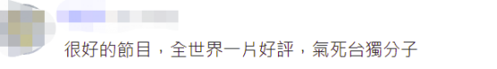 也有網友說,“很好的節目,全世界一片好評,氣死‘台獨’分子。” ↓