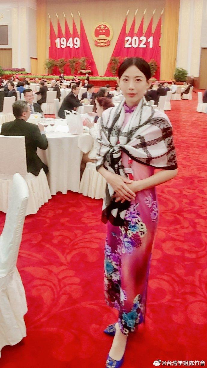 2021年9月28日晚,陳竹音在微博中還曬出自己受邀參加慶祝中華人民共和國成立72周年招待會的請柬和嘉賓證照片,同時感言道:作為一名在寶島台灣土生土長的青年,有機會走進人民大會堂,心中倍感榮耀和感恩:感謝偉大的祖國讓我們台灣同胞有一個家可以回;有強大的祖國做依靠,我們的未來有盼望!恭賀中華人民共和國成立72周年!期盼我的家鄉早日回到祖國懷抱!