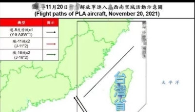 台防務部門12日發佈的解放軍殲-16戰機同型機圖片 據台灣《聯合報》報道,台“空軍司令部”12日曾發佈台西南空域“空情動態”,當日有運-8反潛機、殲-11戰機各一架次、殲-16戰機3架次進入台“防空識別區”西南角,按空軍公佈的航跡示意圖,以殲-16戰機最接近東沙島空域,但圖示顯未達進入東沙島“領空”。 報道稱,根據臉書粉絲專頁“台灣西南空域”側錄12日台空軍在南部空域的無線電廣播抄件內容顯示,12時30分有一批“共機”接近東沙島,台戰管人員向“共軍”喊話:“東沙南面空域高度5100公尺的‘中共軍機’注意:你已進入我領空,影響我飛航安全,立即回轉脫離。” 報道聲稱,東沙島的“領空”定義,是比照本島畫定十二浬(海里)領空。台空軍喊話抄件顯示,“這批‘共機’顯然進入我十二浬領空”。 報道提到,台“空軍司令部”與“國防部”向來不公開證實民間側錄獲得的“驅離”廣播抄件內容。據了解,台空軍“戰管驅離”喊話稿件內容,每一批均須經在“空軍聯合作戰指揮中心”當值的空軍作戰指揮官或副指揮官核定。“共機”進入台“防空識別區”時,“驅離”廣播稿慣向“共機”警告稱“你已進入我空域”;軍方私下稱,當日戰管參謀人員廣播一時“口誤”,將“你已接近我領空”誤稱為“你已進入我領空”。 對於解放軍在台海周邊的軍事行動,國防部新聞局副局長、國防部新聞發言人譚克非大校2021年12月30日下午在例行記者會上曾表示,當前台海局勢緊張升級的根源,在於民進黨當局和“台獨”分裂勢力的謀“獨”挑釁和外部勢力的“以台制華”圖謀。捍衛國家主權安全、遏制“台獨”分裂行徑,中國人民解放軍義不容辭。 譚克非表示,2021年以來,解放軍常態環台島組織轟炸機、偵察機、殲擊機等開展巡航,常態抵近台島周邊組織多軍兵種力量聯合戰備警巡,常態在台島附近海空域組織聯合對海突擊、聯合對陸打擊、聯合防空作戰等實戰化演練,實際出動飛機架次比民進黨當局炒作的數量只會多、不會少,目標十分明確,那就是以果斷行動回擊島內外勢力頻繁勾連、挑戰一個中國原則的惡劣行徑,堅決捍衛國家主權和領土完整,切實維護兩岸同胞共同福祉和台海地區和平穩定。 【編輯:胡雪石】