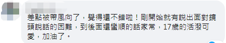 《自由時報》臉書截圖 對於綠媒的這波操作,有島內網友在臉書評論區留言諷刺,“差點被帶風嚮了,覺得還不錯啦!剛開始就有說出面對鏡頭說話的困難,到後面還蠻順的話家常,17歲的活潑可愛,加油了。”