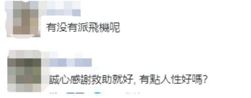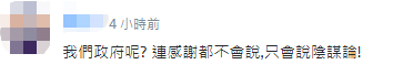 也有網友質疑台當局,“我們‘政府’呢?連感謝都不會說,只會說陰謀論!”