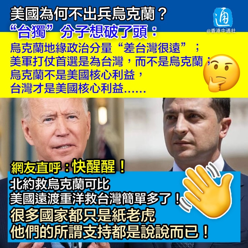美國為何不出兵烏克蘭?“台獨”分子想破了頭分享到: