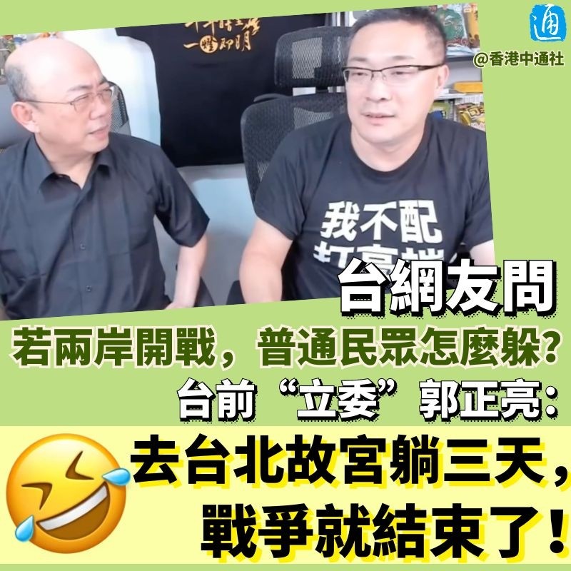 香港中通社製圖 昨晚(1日),郭正亮參加“朱學恒的阿宅萬事通事務所”網絡評論節目。節目中,有島內網友問“如果兩岸開戰要怎麼躲?”郭正亮建議,可以躲在台北故宮。 主持人朱學恒質疑,但到那邊要怎麼吃飯?要睡在廣場上嗎? 郭正亮直言:“帶一點乾糧啊,到那邊(台北故宮)躺三天,戰爭就結束了!” 有網友表示贊同,因為兩岸都很看重台北故宮,躲到台北故宮和台積電都比較安全。也有人調侃:“老百姓擠不進去的,裡面全是民進黨。” 在節目中談及烏克蘭局勢時,郭正亮引用了一段塞爾維亞諺語——“在戰爭中,政治家提供彈藥,富人提供糧食,窮人提供孩子。戰爭結束後,政客取回剩餘的彈藥,富人種更多的糧食,窮人尋找孩子的墳墓。”表達戰爭的殘酷性,以及政客罔顧普通民眾生命,在其中挑事拱火。 朱學恒也認為,在戰爭中最慘的就是一般民眾。“戰爭一旦開始,普通民眾沒有選擇權,誰也沒辦法保證子彈不會擊中自己和家人。” 兩岸民眾都不希望發生衝突,但台灣民進黨當局還是不斷挑釁大陸、倚美謀“獨”⋯⋯ 近日,民進黨當局會見竄訪台灣的美前高官代表團,致兩岸關係持續緊張;幾乎同一時間,他們又悄悄提高島內防備,盤點各地防空洞及避難場所。