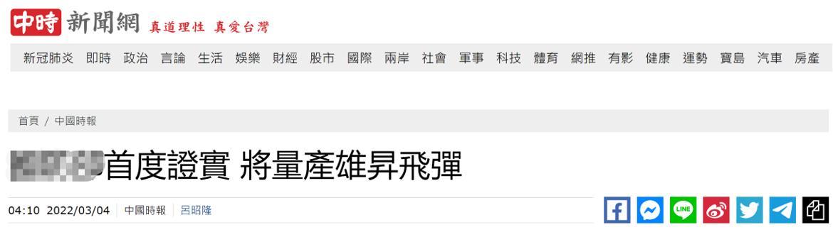 據台灣《中國時報》3月4日報道,台防務部門日前最新送交台立法機構的書面報告,首度證實將量產代號為“雄升導彈”的地對地巡航導彈,對此,有島內網友諷刺,台灣的漁船要小心了,還有網友直言,“把電廠顧好先啦~一個電廠就能搞到全島停電,有多少導彈都沒用”。