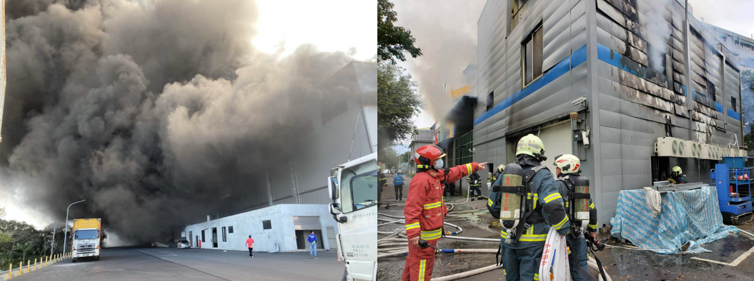桃園市火災與台北市火災 香港中通社圖片 台灣14日接連發生四起火災,上午3起火災分別發生於桃園市某物流中心、雲林縣工業區以及新竹縣某發電廠,下午1起火災發生於台北市大同大學,所幸4起火災均無人員傷亡。 ● 台軍機失事 飛行員跳傘獲救