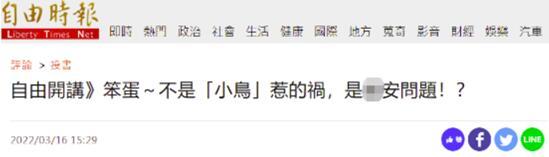 台灣《自由時報》報道截圖 對於民進黨甩鍋大陸的做法,台北市議員侯漢廷在臉書嘲諷道:“我看到綠色陣營一堆人在喊人為破壞、台灣‘第五縱隊’…蒼天啊,不讀書真的很可怕。” 台灣知名媒體人劉寶傑則在政論節目中誇張演繹、反串嘲諷稱“對岸訓練動物死士大軍”,“我怕大陸了,現在大陸多厲害,已經有動物部隊,可以訓練鳥、松鼠,它們居然有意識來破壞台灣的電網……” 島內眾多網友也紛紛嘲諷道:“被你發現鳥跟松鼠是大陸訓練的了”、“什麼都推給大陸,這是什麼邏輯?”“民進黨能源政策再不處理,看你們能騙多久。”