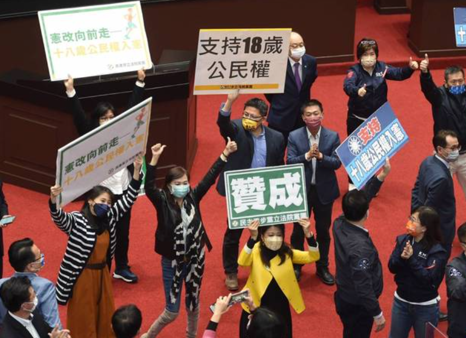 香港中通社3月25日電 台北消息:台灣立法機構25日通過“18歲公民權修憲案”,該案將台灣民眾行使“公民權”的年齡下限自20歲下修至18歲,全案公告半年後將進行“公投”復決程序,門檻為選舉人總額半數(約965萬票),複決通過方可正式生效。