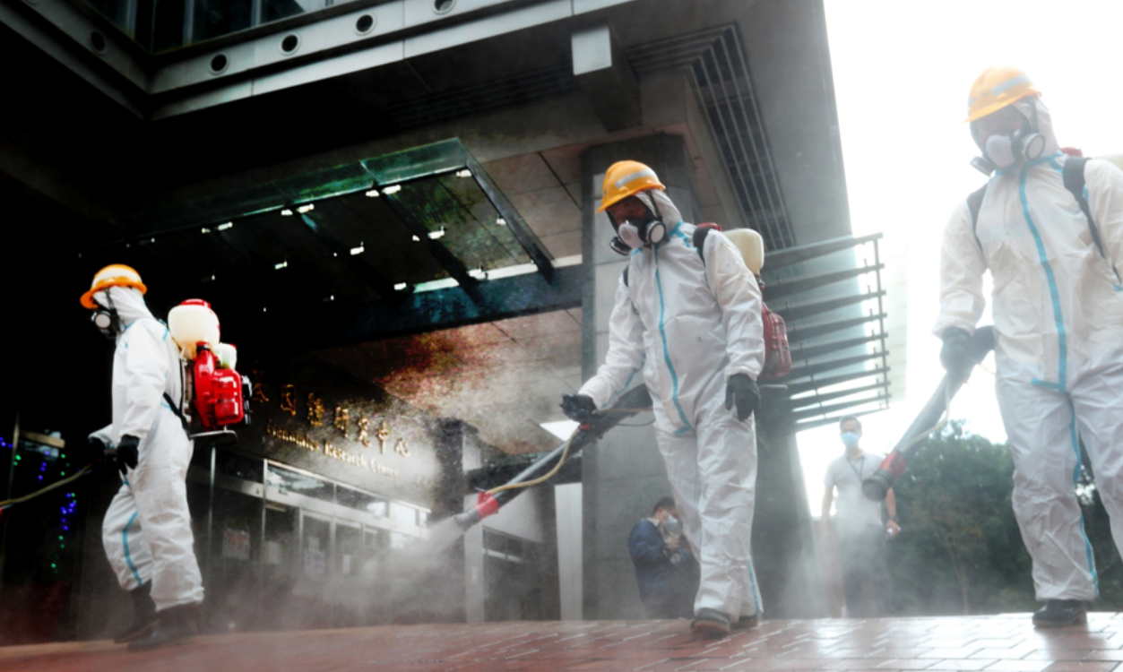 衛生人員消毒中 圖片來源:中時新聞