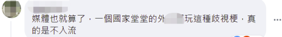 也有網友認為台外事部門玩這種歧視梗“真的是不入流”。↓