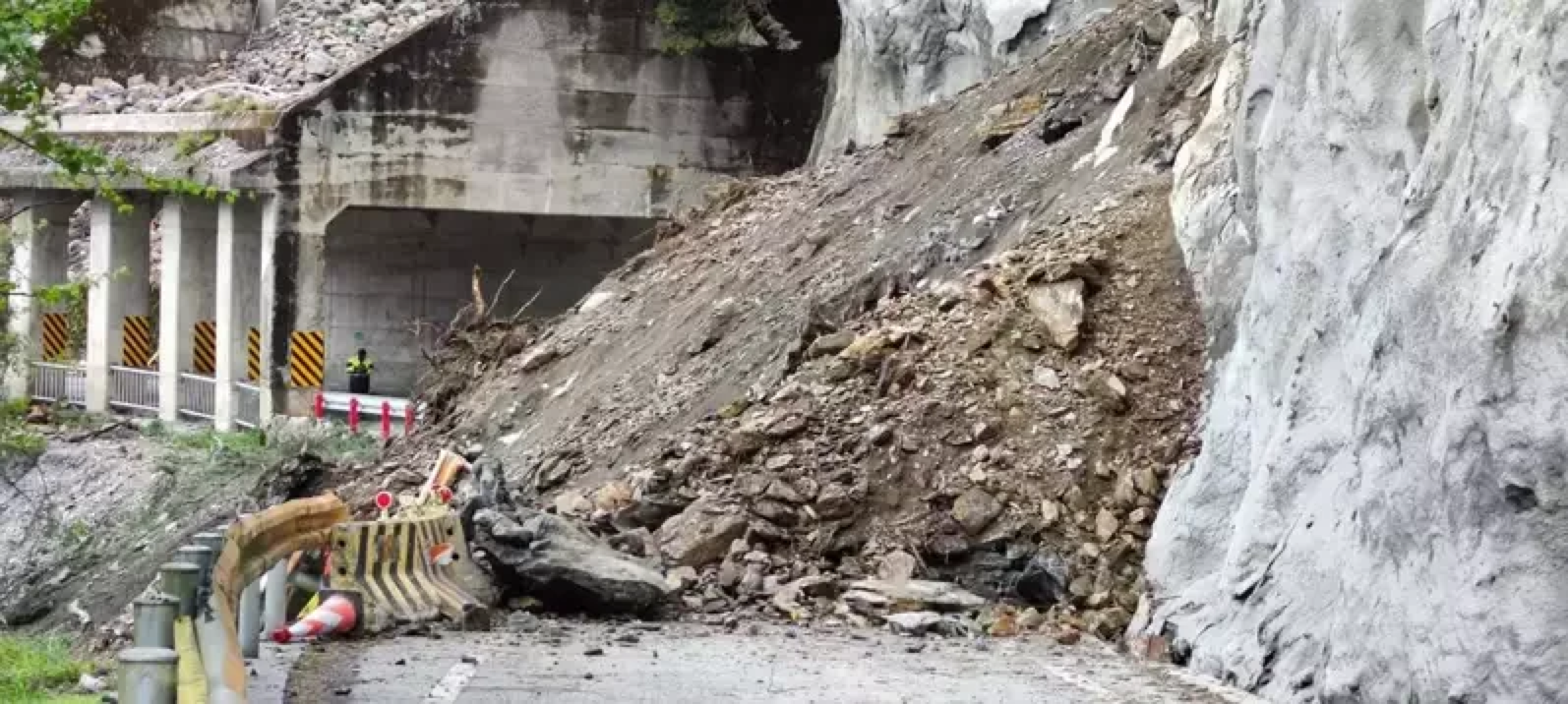 台灣近日地震頻繁、山區又受降雨影響,27日下午中橫公路117.8公里處,邊坡發生大面積崩塌,道路被中斷。台公路主管部門派出大型機具搶修,警方也在西側拉起警戒,管制人車通行。(香港新聞網3月28日綜合) 【編輯:施鑫岳】