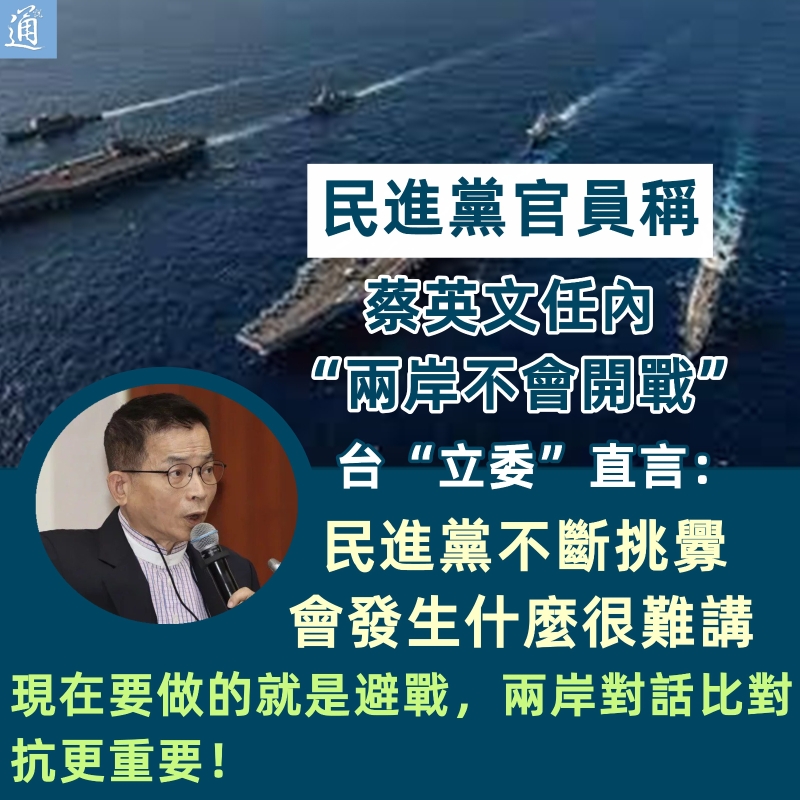 台官員稱蔡英文任內不會開戰 台“立委”憂:民進黨挑釁大陸,怎能保證不衝突?分享到:
