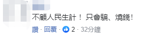 還有網友批評民進黨當局“不顧人民生計”,“只會騙、燒錢”!