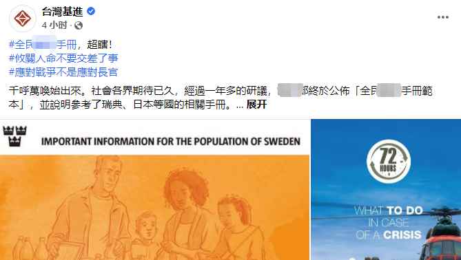 民进党侧翼——“台灣基進”就在臉書直接發帖炮轟“超瞎!” “台灣基進”表示,過去曾6次質詢“全民防衛手冊”,如今手冊中眾多災防資訊竟然以QR code形式供民眾閱讀,且大量篇幅用作“界定權責歸屬”,如戰爭發生時該找誰,幾乎沒有提及“抵抗意志的重要”。“台灣基進”稱,對台防務部門端出這樣的成品,完全無法接受,根本是丟臉丟到國際,只能用“錯愕”來形容。 此前“全民防衛手冊”內容披露後,台灣民進黨“立委”林靜儀也曾質疑,這本手冊只告訴民眾“各單位負責什麼”,卻根本沒有教民眾戰時去哪裡避難、該如何自保。 林靜儀批評,手冊關於“醫療急救”篇章的第一頁,“全部都是廢話”,第二頁只教民眾迅速使用紗布或衣物,進行出血控制及止血包紮等自救互救,等待專業醫護人員或緊急救護。林靜儀痛斥,“叫民眾把自己包好坐在那邊等是不是?然後救護車就咿吼咿吼的來是不是?手冊告訴我這些要幹什麼?” 對於“全民防衛手冊”被藍綠營罵翻,有島內網友諷刺道,“(台防務部門)編的人以為沒有人會認真看吧”、“想說大家都隨便看看,寫的人也就隨便寫寫了”。