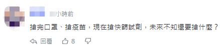 台湾當局宣佈將徵用快篩試劑!民眾怒斥:又要排隊,还買不到!香港新聞網4月15日電 台灣本土疫情升溫,快速篩查試劑需求暴增,台灣當局隨即喊出要籌組“快篩台灣隊”,並於昨日(4月14日)宣佈即日起徵用快篩試劑,目標每月4000萬劑,未來將參考“口罩實名制”作法,以健保卡登記的方式,讓民眾在一定時間內以平實價格取得快篩試劑。 不過,這則消息出來後,不少島內網友表示,此前台當局推出“口罩實名制”,結果口罩賣得更貴,怒斥台當局“搶完口罩又搶快篩試劑”、“(口說徵用)1人每月分配1支快篩試劑,然後市面上買不到,真是好棒棒!”