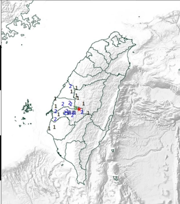 台氣象部門公佈地震位置 台灣氣象部門16日通報,當天3時47分在嘉義縣發生里氏4.0級地震,地震深度13.8公里,震中位於嘉義縣政府東北方47.4公里(嘉義縣阿裡山鄉)。(香港新聞網4月16日綜合) 【編輯:鄭竣凱】