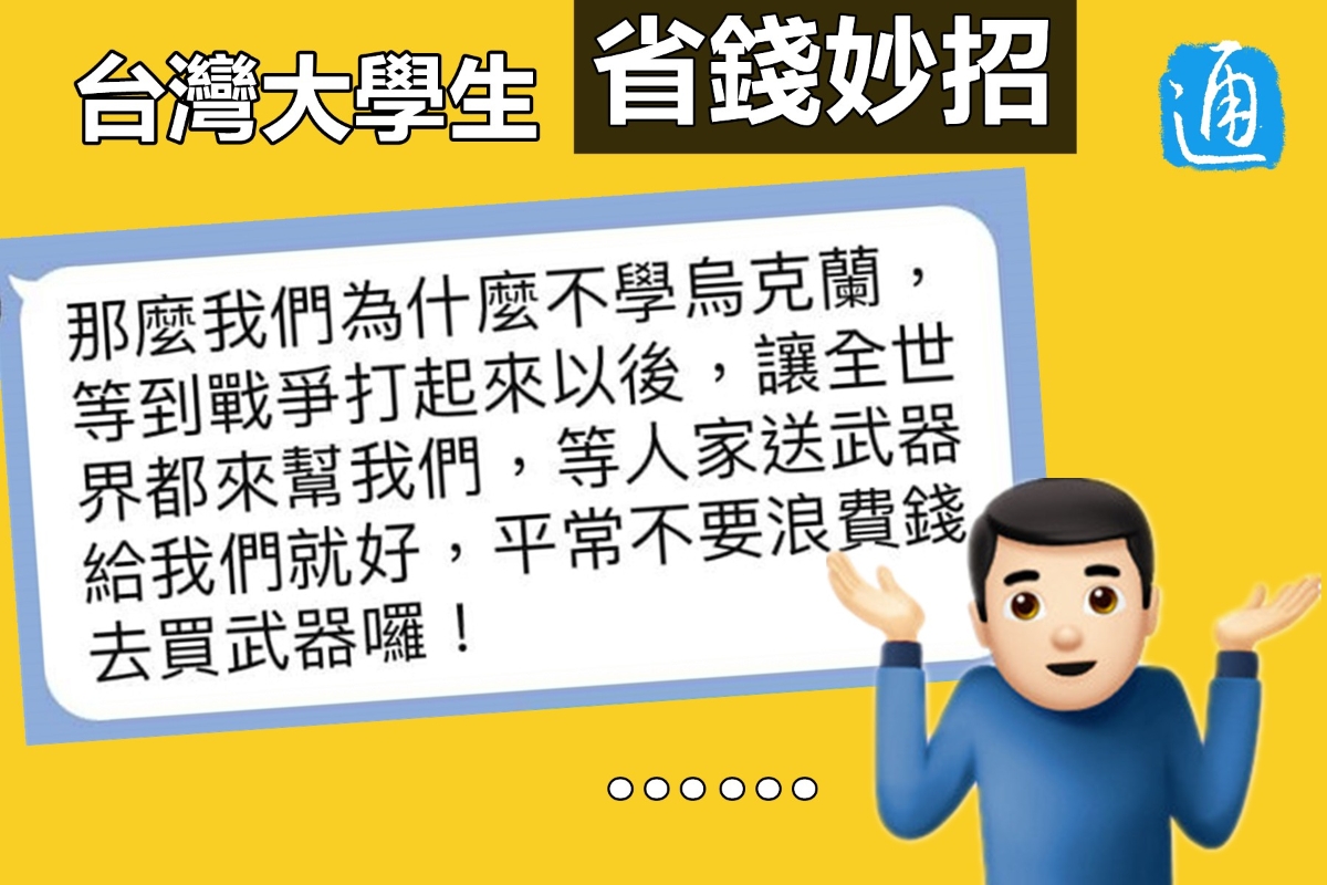 腦子被民進黨洗壞了?島內大學生:台灣不用買武器,可以等全世界送分享到: