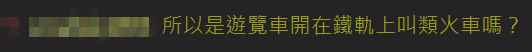 有網友反問:明明是搭客運,從民進黨官員口中講出,就變成“類火車”,“所以是遊覽車開在鐵軌上叫類火車嗎?”