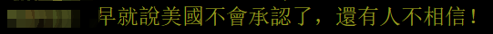 还有網友表示,早就說美國不會承認了,還有人不相信!