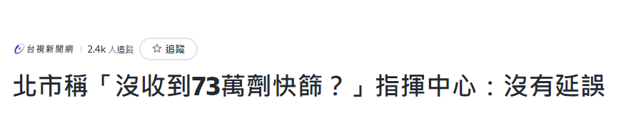(台媒報道截圖) 此外,關於地方頻頻喊話指揮中心,希望多給快篩試劑,陳時中口中分配給台北的73萬劑快篩試劑究竟送到了沒?也成為最近島內關注的焦點。 對此,台灣流行疫情指揮中心今天(5月9日)表示,公費快篩相關物流作業日期,均經過與各縣市政府承辦人員溝通後才確認,未延誤任何作業,特此澄清。 指揮中心發言人莊人祥說,指揮中心於5月6日以電子郵件通知各縣市後,各縣市已回報配送點及收件人資訊。以台北為例,已訂於今天起陸續發貨,包含5月9日、5月11日及5月13日分別配送30萬、23.5萬及19.5萬劑。