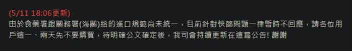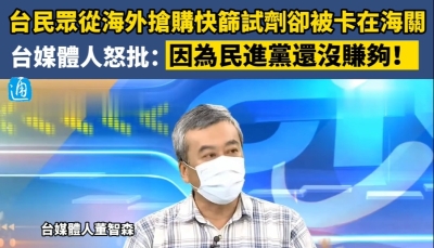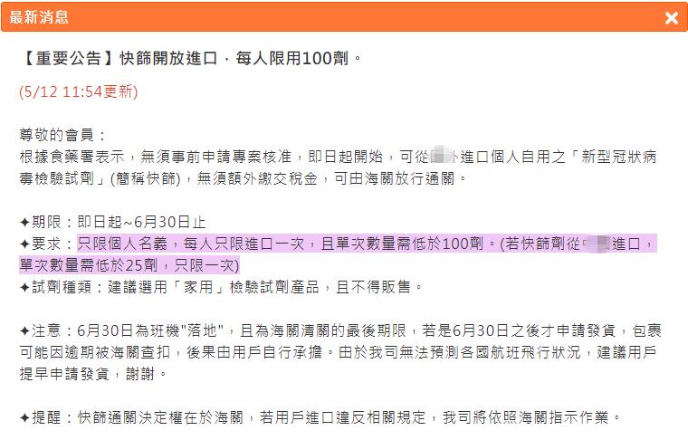 (圖片:台灣流行疫情指揮中心) 據台灣“中央社”報道,台灣流行疫情指揮中心研發組副組長吳秀梅5月11日在疫情記者會上宣佈:為便民防疫,即日(5月11日)起至今年6月30日,民眾自海外輸入個人自用快篩試劑,每人限一次,且不超過100劑,無須申請專案核准,可直接由海關放行“通關”,輸入後僅供個人使用,不得販售。 此外,台灣流行疫情指揮中心還表示,民眾自購快篩試劑,並不限制是台衛生福利部門核准的產品,但檢測結果不得作為配合防疫政策判斷依據,其產品安全性及有效性須由民眾自行負責。 事實上,就在幾天前,台灣就有多名“立委”紛紛反映,有民眾試圖從海外採購或請親友協助寄回的快篩試劑,都被卡在台灣海關,還要繳交手續費新台幣2000元,導致至少有上萬劑快篩試劑進不來台灣…… 眾“立委”痛批:這個狀況顯得民進黨當局很“無能”,連“老百姓自救也被擋”。 因此,在昨天(5月11日)看到民進黨當局宣佈放開個人自用快篩進口後,不少台灣網友隨即上網查詢並嘗試從海外購買快篩試劑,但結果卻發現:供貨量最大,由大陸製造的快篩試劑被針對了! 在台灣論壇PTT上,有台灣網友表示,看到新聞後去找集貨公司,卻看到公告顯示“若快篩劑從中國(大陸)進口,單次數量需低於25劑”,不甘心的他又找了幾家公司,有的乾脆說大陸製禁止進口,有的甚至根本還沒更新快篩進口的相關工作機制…… 這位網友表示,他好不容易找到一家說可以運,自己簡直是“喜出望外”,於是立馬下單淘寶付錢,結果還沒等到出貨,就收到該集貨公司的通知,稱海外自購快篩的政策變了,“若為中國(大陸)製,限24隻”,只能選擇退單、退款。 隨後,這位網友就此次購買經驗得出結論:民進黨當局說“可以去買(淘寶),(卻)沒有說你可以運進來”…… 對此現狀,不少台灣網友都感到氣憤,紛紛在貼文下方留言表示: “這個政府最愛搞小動作,讓民眾傻眼。” “果然又拿出卡(大陸代理)疫苗的功力,不愧是民進黨。” “笑死,是不是怕大陸的太便宜打亂(台灣)市場。” 此外,值得一提的是,這位台灣網友提及的公告“大陸製進口單次數量需低於25劑”的集貨公司,其實並沒有說得那麼直接。 小編查閱發現,5月11日18點06分,該公司曾更新消息:由於“食藥署”跟關務署(海關)給的進口規範尚未統一,目前針對快篩問題一律暫時不回應,請各位用戶這一、兩天先不要購買,待明確公文確定後,會持續更新。 5月12日11點54分,該公司刪去了這一行字,僅称快篩通關決定權在於海關,提醒用戶勿違反相關規定。