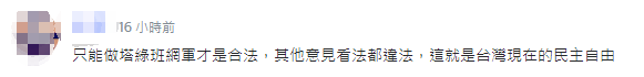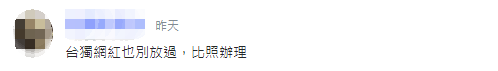有台灣網友表示:民進黨當局應該“台獨網紅也別放過,比照辦理。”