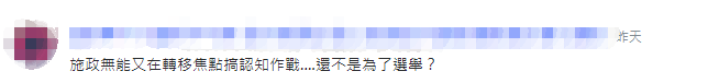 有台灣網友乾脆直言:民進黨當局現在轉移焦點、搞綠色恐怖,“還不是為了選舉?”