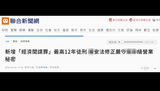 台灣“中央社”報道截圖 “中央社”稱,為保護台灣高科技產業,“防止重要關鍵技術外流”,台“行政院”此前提出所謂“安全法”部分條文修正草案,報送台立法機構審議;台立法機構今天開會完成“三讀”。 此次“三讀”通過的條文提到,“任何人不得為外國、大陸地區、香港、澳門、‘境外敵對勢力’或其所設立或實質控制的各類組織、機構、團體或其派遣之人,為侵害台‘核心關鍵技術’的行為”。 “中央社”還稱,這次修法新增“懲罰”內容,規定“如以竊取、侵佔、詐術、脅迫、擅自重制或其他不正方法而取得台‘核心關鍵技術’的營業秘密,或取得後進而使用、洩漏”,可處5年以上12年以下有期徒刑,並科新台幣500萬元以上1億元以下罰金。